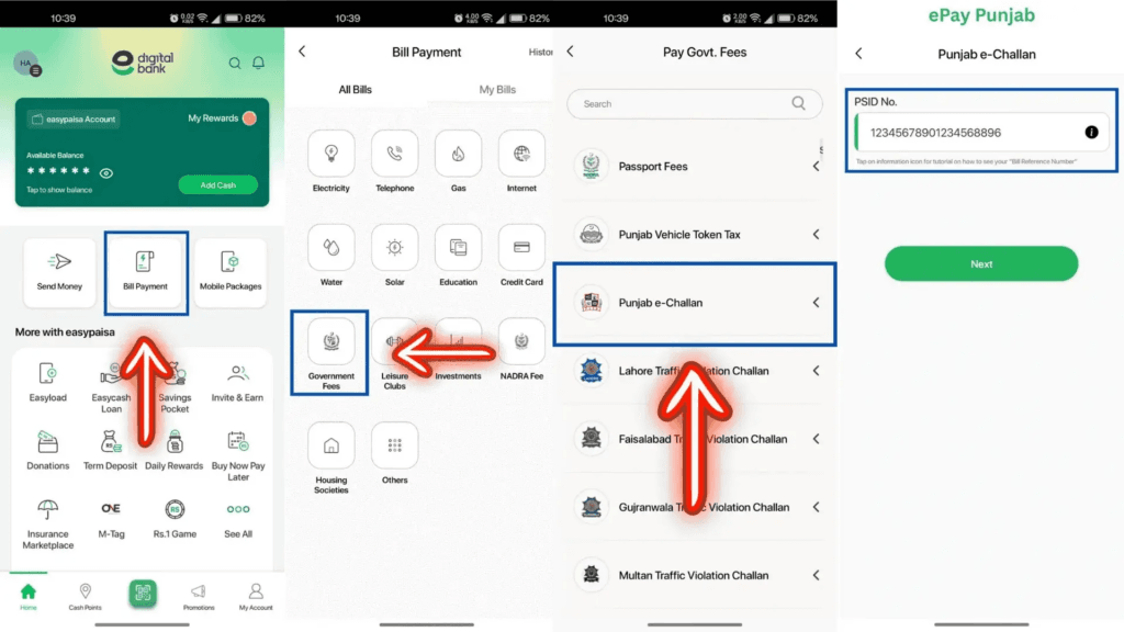 - ePay Punjab Mobile App (Android or iOS)