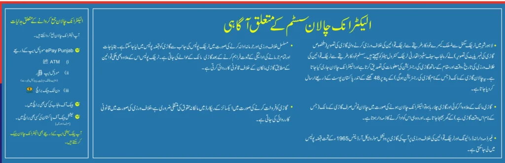 With the launch of E-Challan Lahore and its expansion throughout Punjab, motorists can now: